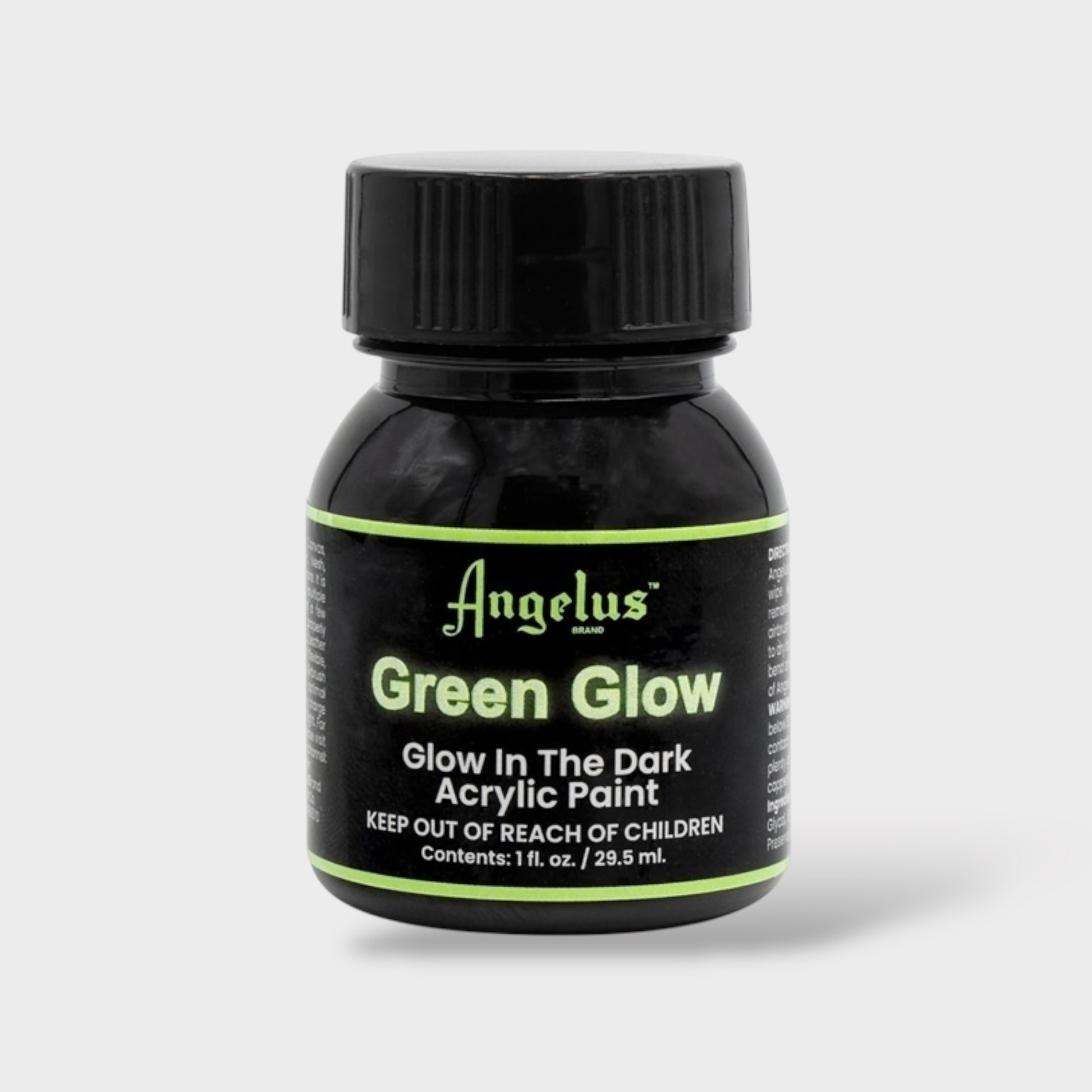 Bring your imagination to life after dark with the Angelus Green Glow, Glow In The Dark Acrylic Paint. Perfect for adding a luminous touch to any project, this leather paint will make your creations shine and stand out even in the dark.