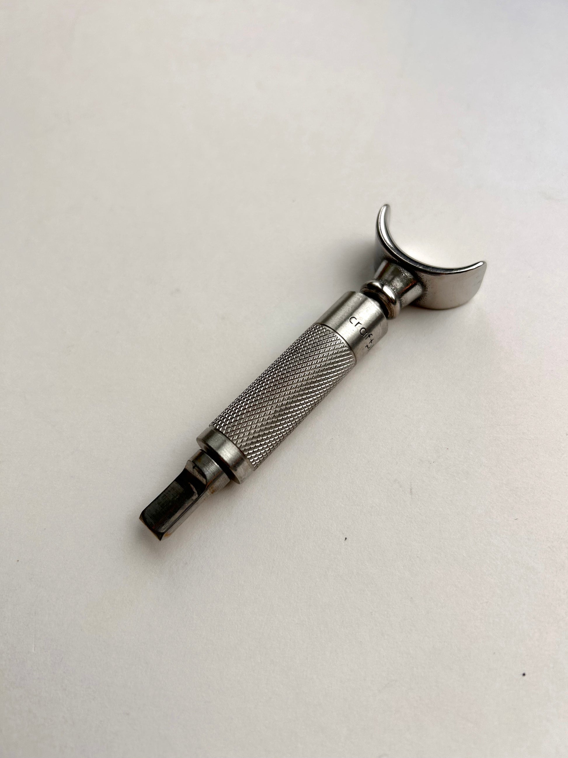 The Craftplus Swivel Knife is a quality, hand crafted swivel knife for professional leather artists, made by Craftplus® in stainless steel. It features an easy grip handle and contoured yoke. The adjustable length is designed to comfortably fit any hand size. Each swivel knife comes with a high strength Hollow Ground pro blade.