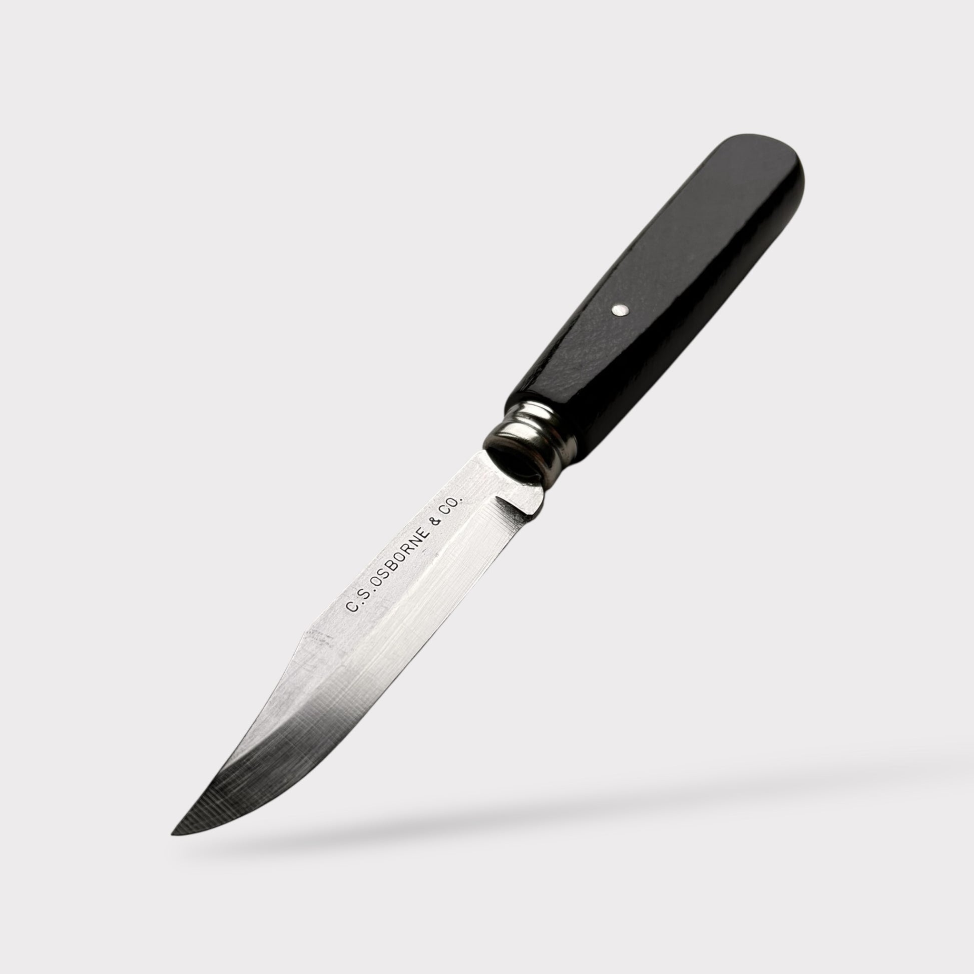 CS Osborne Sloyd Knife No. 6 with steel blade with a solid lacquered hardwood handle. The blades are drop forged from the best quality steel, being carefully hand ground, tempered and highly polished. This premium blade is a very useful tool to have in your workshop for whittling, woodworking & detail carving projects, as a carving knife, blade knife, for shoe making and many other uses. When properly cared for, these are the kind of tools that will last for generations.