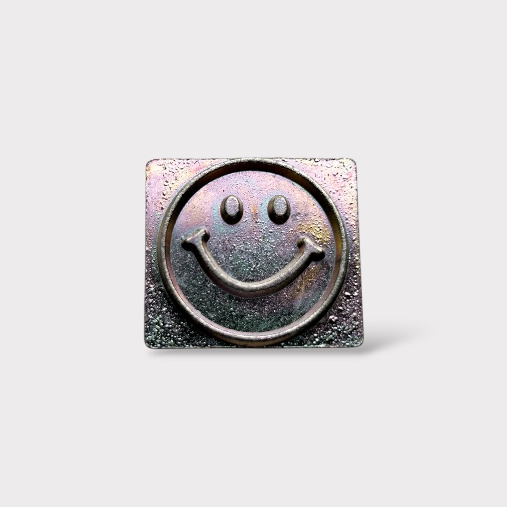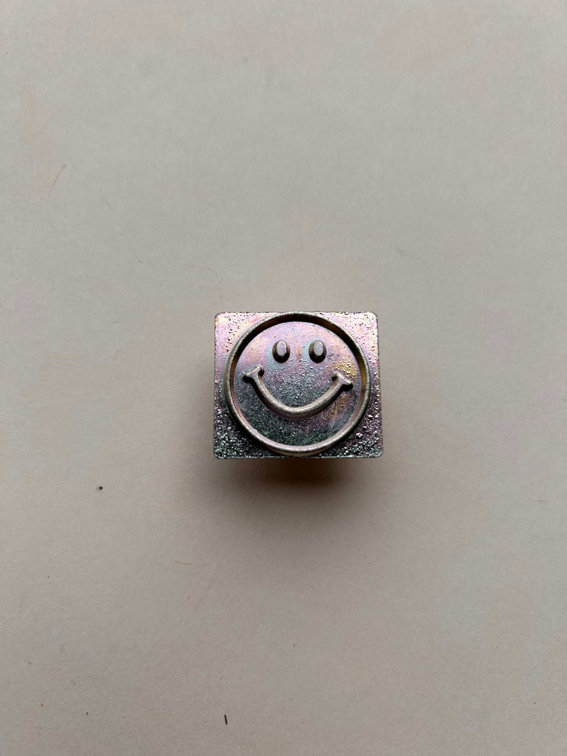 Leather embossing stamp with simple happy face design, for leatherwork and carving projects. For use with an embossing stamp handle (such as the spring loaded stamp handle, heavy duty ram foot or hefty handle) and
