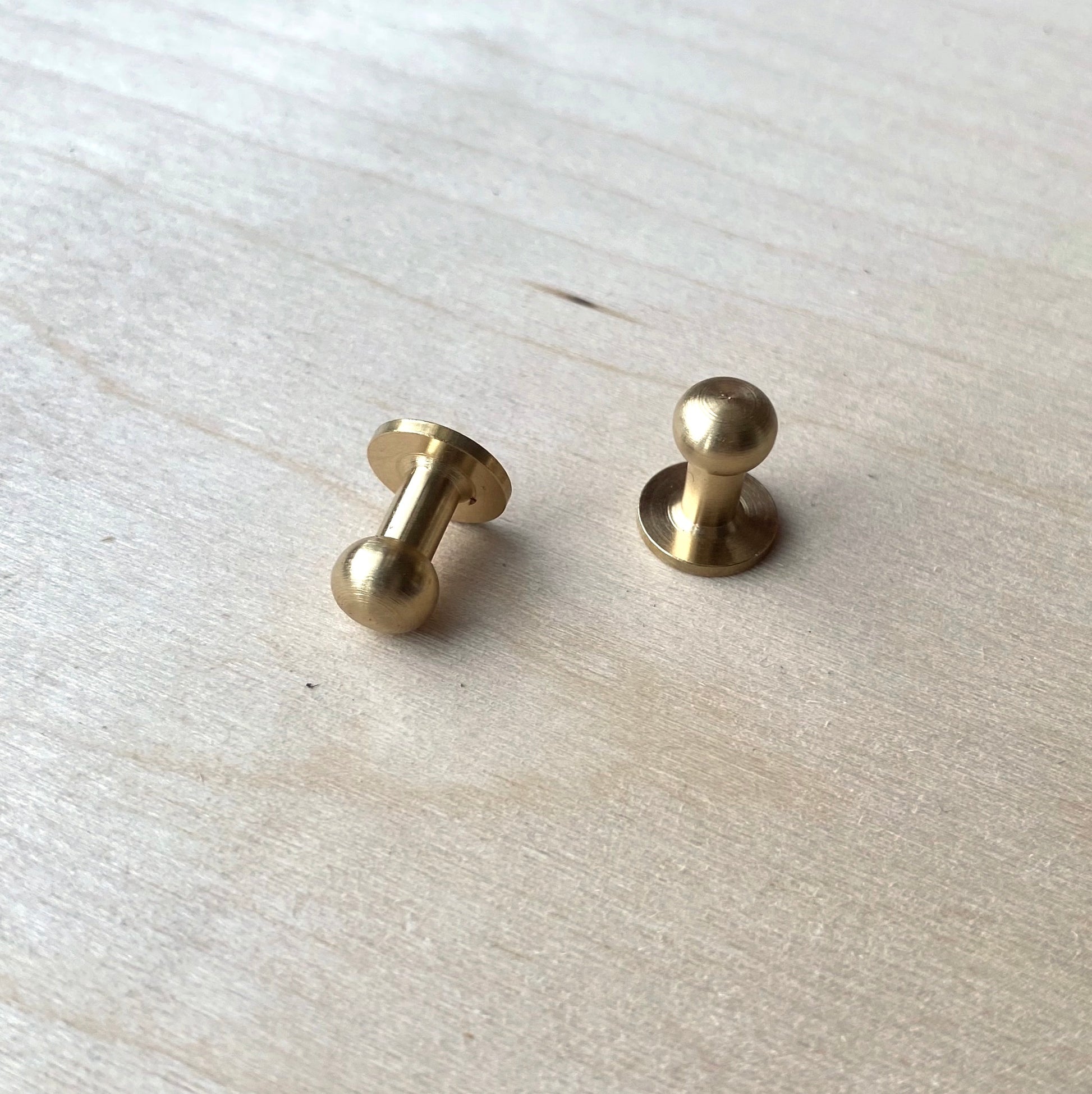 The Solid Brass Sam Browne Leather Studs are screwed studs for embellishing leather, flap fastening and belts. These button studs are available in solid brass or nickel plated. Various sizes are available as listed below. They can be purchased as a single sample (maximum of 1 per order) or a set of 10 by selecting the option. Please get in touch for larger quantities, and see the descriptions below for full details of stud sizing.